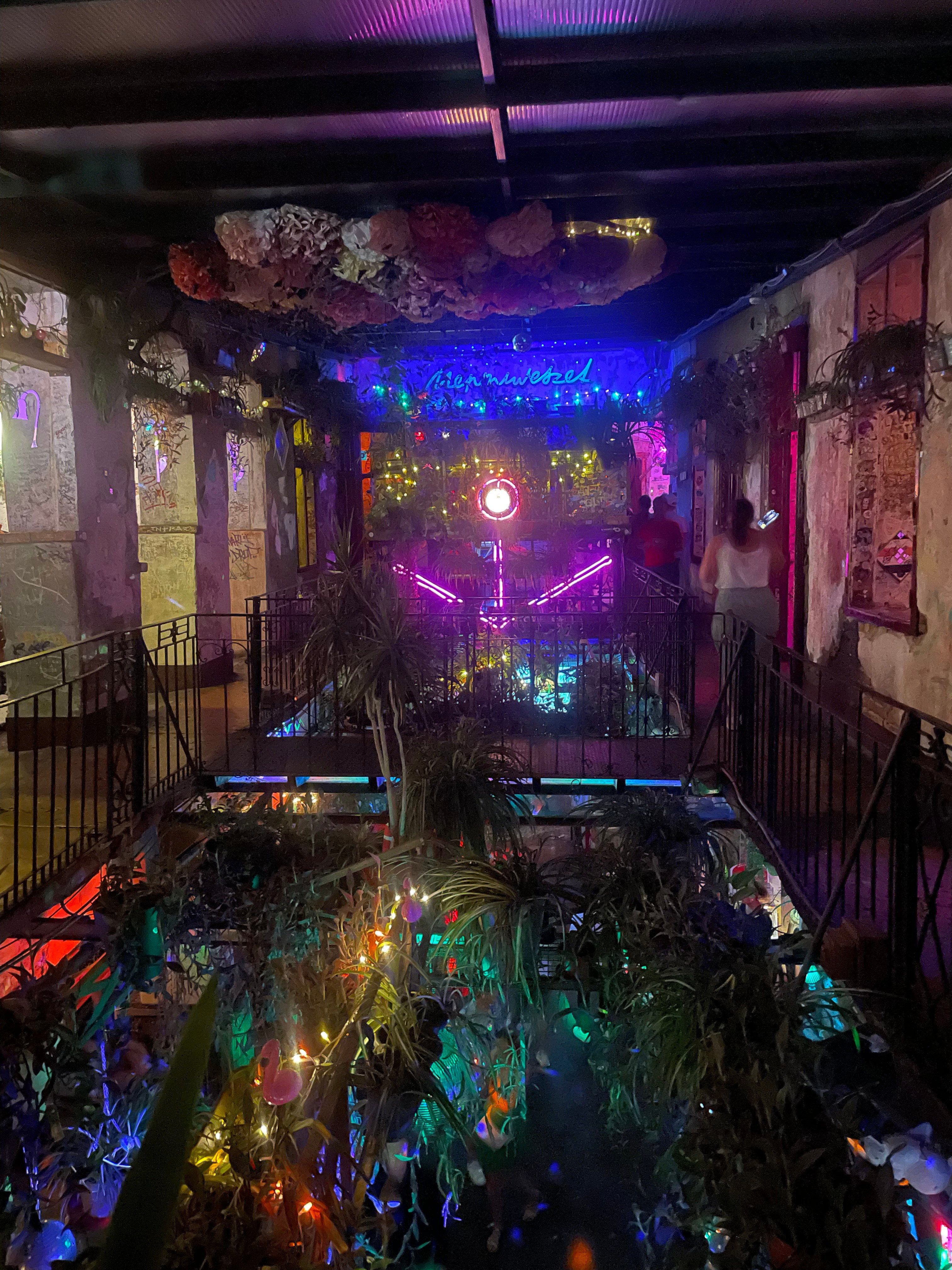 Our first night ended in a ruin pub — a Budapest institution. Think mismatched furniture, fairy lights, vintage clutter, and a carefree vibe tucked into the skeleton of an old building.